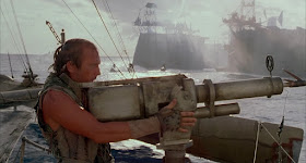 En último término, “Waterworld” es una copia de “Mad Max” que sustituye el desierto por el océano. Una copia muy cara y espectacular, sí, pero una copia después de todo. De hecho, la única diferencia entre “Waterworld” y el enésimo plagio italiano de la película de George Miller es su presupuesto multimillonario. Lo triste de ese derroche de dinero es lo representativo que resulta de la forma de pensar de Hollywood. Todos los medios se pusieron a disposición de la película: decorados que costaron más que el presupuesto total de la mayoría de los films, una factura diaria de catering superior a lo que cuestan algunas películas de serie B, un ejército de extras… Todo, excepto originalidad.